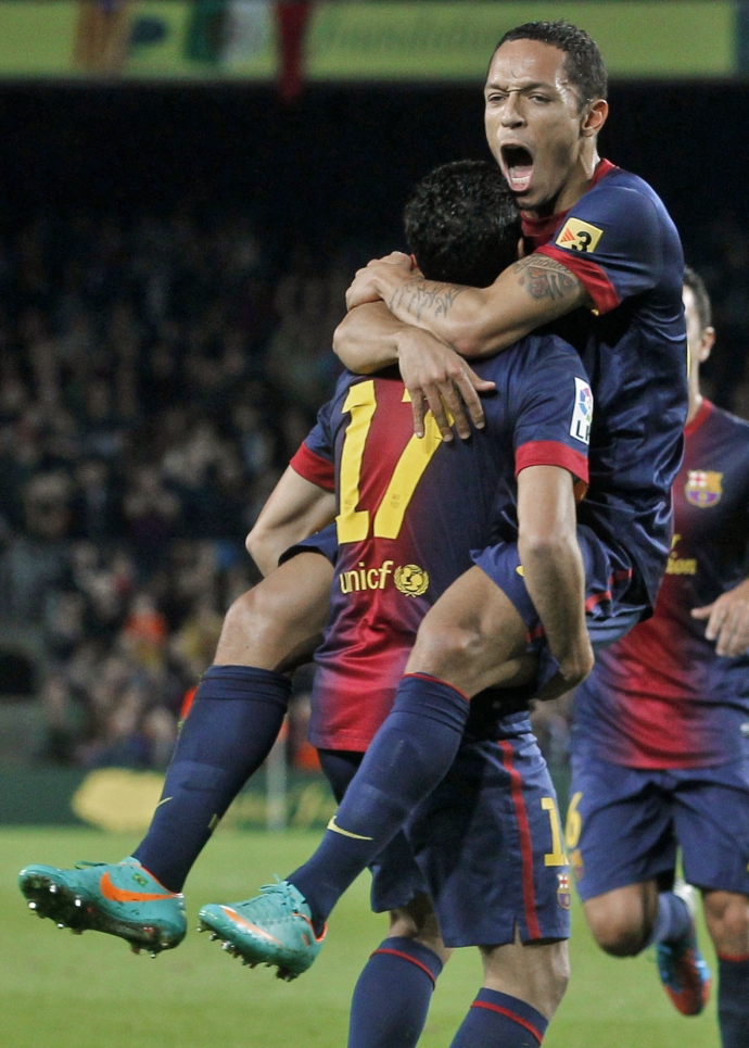 Матч 10-го тура чемпионата Испании «Барселона» - «Сельта» (3:1). Полузащитник «Барселоны» Адриано Коррейя (справа) только что открыл счет. / Фото: © Reuters -