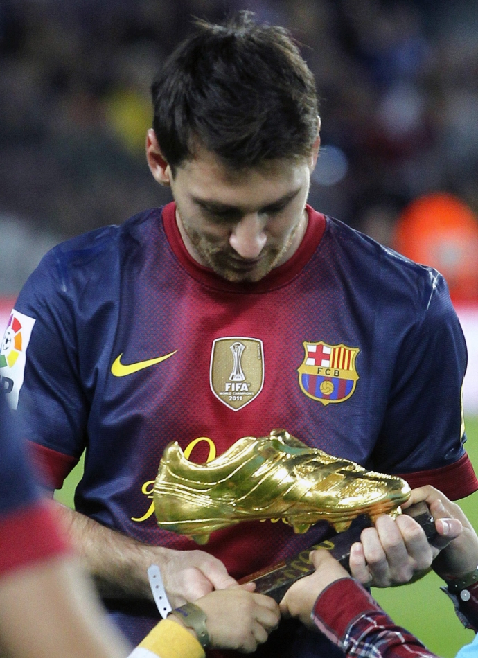 Перед началом 10-го тура чемпионата Испании нападающего «Барселоны» Лионеля Месси еще раз поздравили с получением «Золотой бутсы» лучшему бомбардиру европейских чемпионатов по итогам прошлого сезона. / Фото: © Reuters -