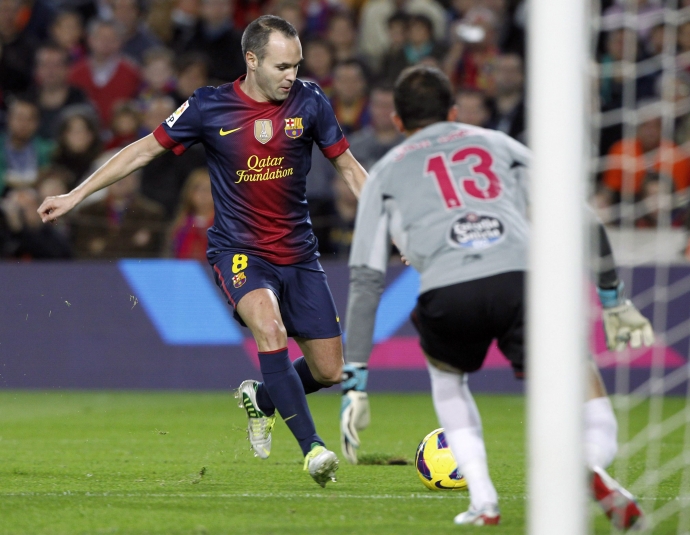 Матч 10-го тура чемпионата Испании «Барселона» - «Сельта» (3:1). Полузащитник «Барселоны» Андрес Иньеста у ворот Хави Вараса. / Фото: © Reuters -