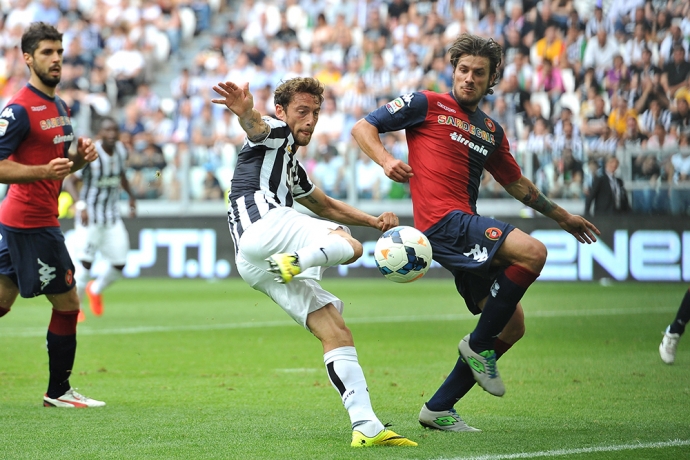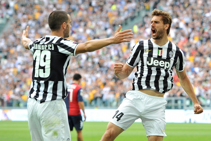 Футболисты «Ювентуса» Фернандо Льоренте (справа) и Леонардо Бонуччи празднуют взятие ворот «Кальяри» (3:0). / Фото: © Getty Images -