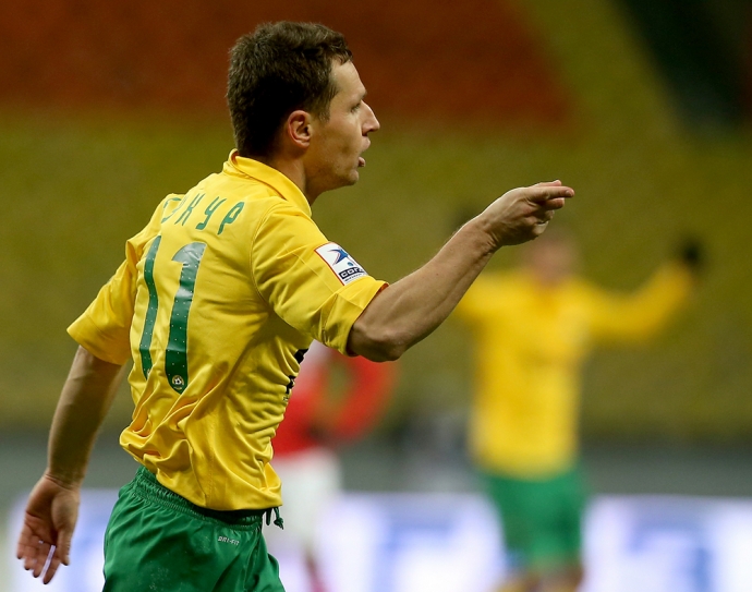 Артем Дзюба (слева) против Алексея Козлова. / Фото: © Getty Images -