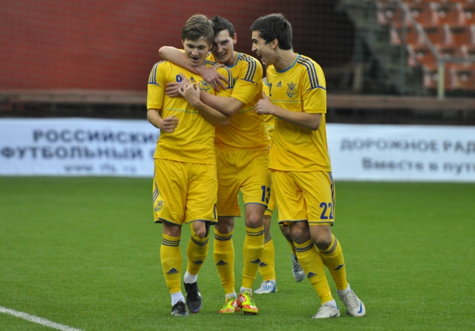 Молодежная сборная Украины празднует забитый гол в финале Кубка Содружества. / Фото: © Елена Разина -