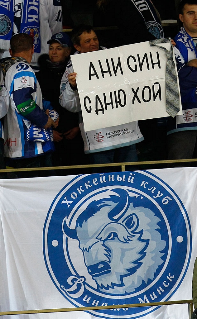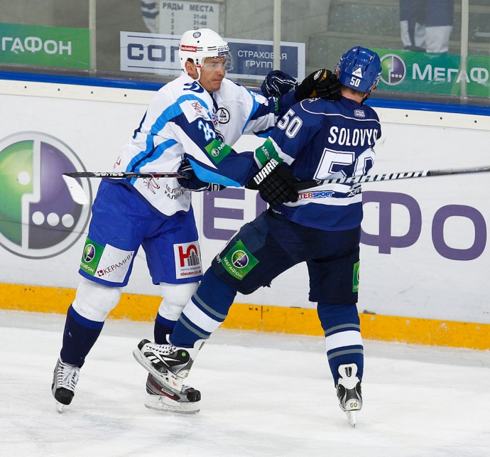 Защитник московского "Динамо" Доминик Граняк и нападающий минчан Джефф Плэтт. Хоккей - игра для настоящих мужчин! / Фото: © Елена Руско -