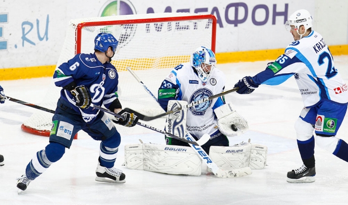 Нападающий московского «Динамо» Михаил Анисин в день рождения отметился дублем, принеся своей команде победу над одноклубниками из Минска во втором матче 1/8 финала Кубка Гагарина (2:0).