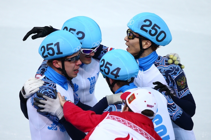 Сборная России по шорт-треку в составе Виктора Ана, Семена Елистратова, Владимира Григорьева и Руслана Захарова завоевала золотую медаль в эстафете на 5000 метров на Олимпийских играх в Сочи. Второе место заняли американцы, с третьим результатом финишировала сборная Китая.