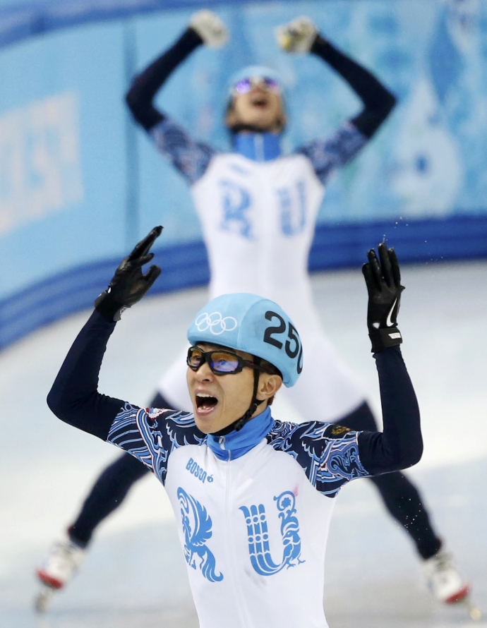 Россиянин Виктор Ан празднует очередную победу на Олимпиаде в Сочи. / Фото: © Reuters -