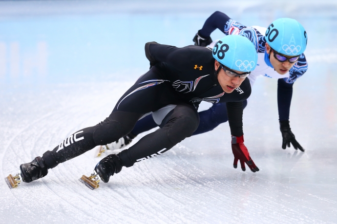 Финальный забег в эстафете на 5000 метров на Олимпиаде в Сочи. / Фото: © Getty Images/Fotobank.ru -